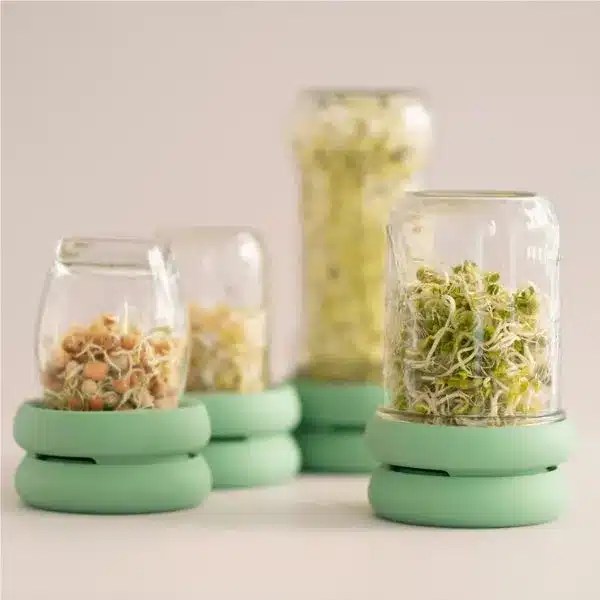 Το σετ Food Huggers Sprout Huggers Sage Green αποτελείται από δύο καπάκια, ειδικά σχεδιασμένα για την καλλιέργεια φυτρών στο σπίτι σας. Εύκολο στη χρήση και ιδανικό για αρχάριους. Ταιριάζει σε κλασικά-συνηθισμένα γυάλινα βάζα για να δημιουργήσει το τέλειο περιβάλλον για την ανάπτυξη θρεπτικών βλαστών στο σπίτι.